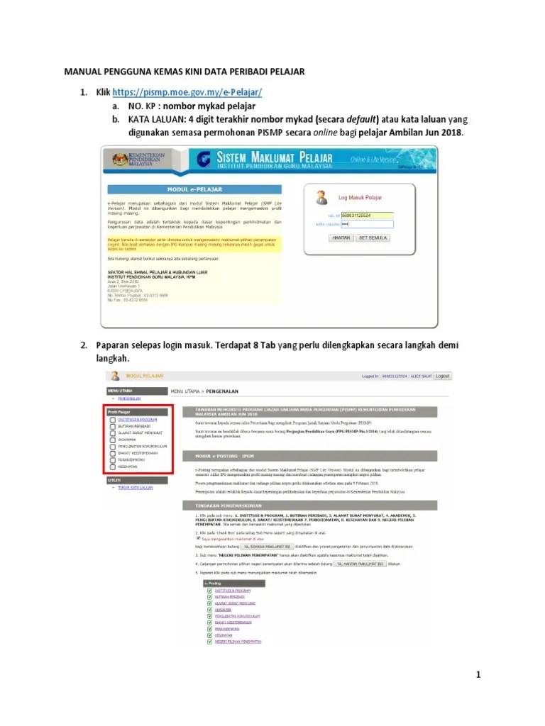 Institut pendidikan guru malaysia ipgm dahulunya maktab perguruan perkongsian buat pelajar yang . Pismp moe gov my e pelajar berita baik buat lepasan spm 2018 2019 atau 2020 yang berminat untuk menjadi seorang guru skaisantt . Laman web ini tidak mempunyai sebarang kaitan dengan bahagian kemasukan pelajar ipta, jabatan pengajian tinggi. Gov.my/ untuk maklumat terkini.terima kasih. Sistem maklumat pelajar ver 3.0. Manual pengguna kemaskini data peribadi pelajar.